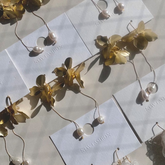 優雅なデザインと華やかなスタイルを楽しめる 『FLOWERPARTY(フラワーパーティ)』のご案内です。 【名前の由来】 『フラワーパーティ』は「花の祭り」を意味し、 このアクセサリーはその名の通り 淡水パールとフラワーモチーフの組み合わせが 繊細で華やかな印象を与え、あなたに特別な魅力をプラスします。 淡水パールの上品な光沢とフラワーモチーフが 耳元で美しく揺れ、エレガントなシーンでも カジュアルな日常にもぴったりのアイテムとして、幅広く活躍します。 また、花言葉「幸福」を感じさせるデザインは あなたの気持ちを表現する素敵なアクセサリーです。 着脱が簡単なので、手軽におしゃれを楽しむことができます。 あなたの個性を引き立てる魅力的な選択肢として、ぜひお楽しみください。 ◎経年変化を楽しみながら、おしゃれを楽しむことができます。 サイズ 縦約9cm(ピアス・イヤリングを含まない) 横約3cm カラー ホワイト×ゴールド 素材 淡水パール 真鍮 (ピアス・イヤリングパーツはステンレスを使用) ※ものによりかすれやキズがある場合がございます。 ※摩擦等により表面の塗装がはがれてしまう場合がございます。 ※メッキに色ぶれやざらつきが生じることがございます。 予めご了承ください。 (パーツによって、他のパーツと色と形のばらつきが生じる場合がございます。)