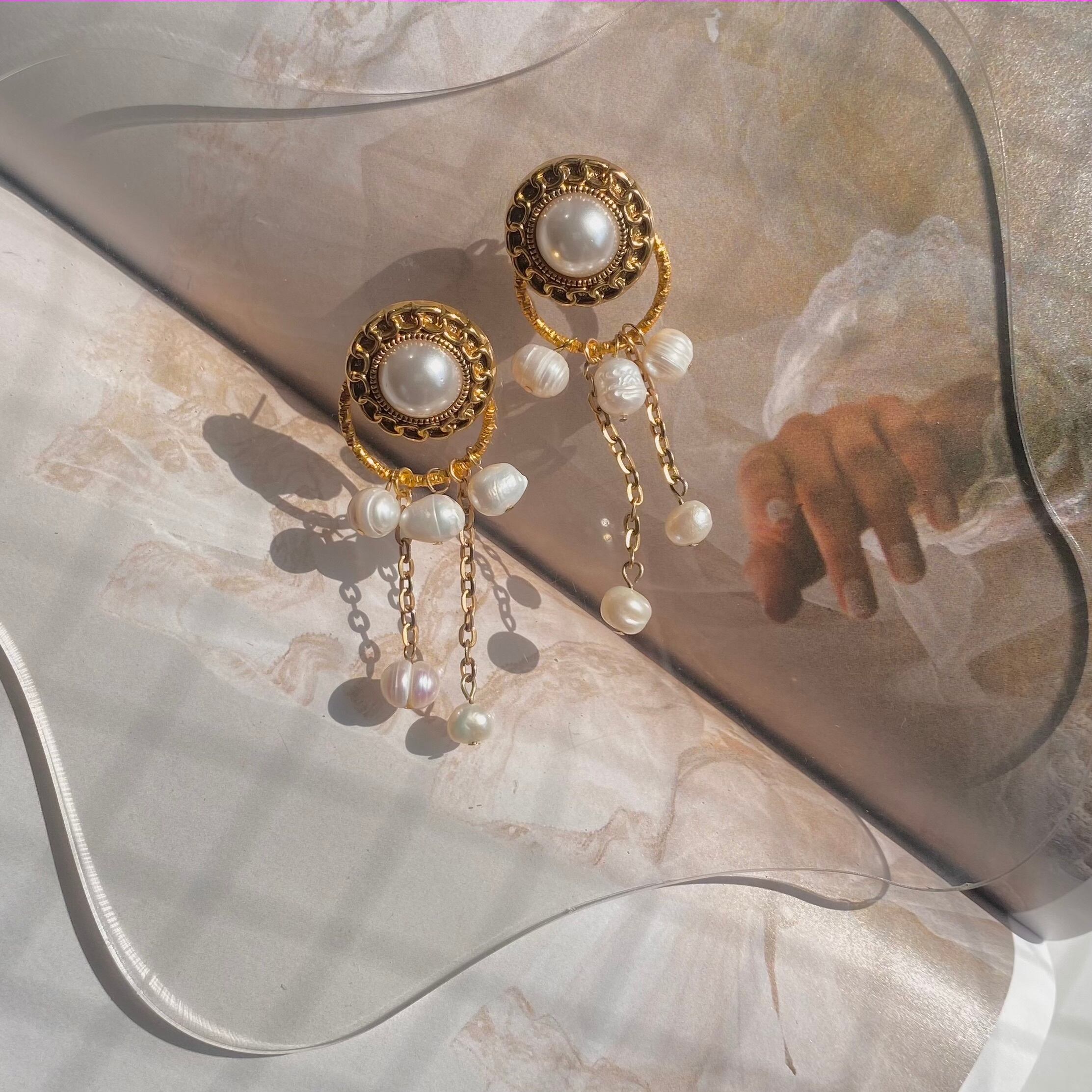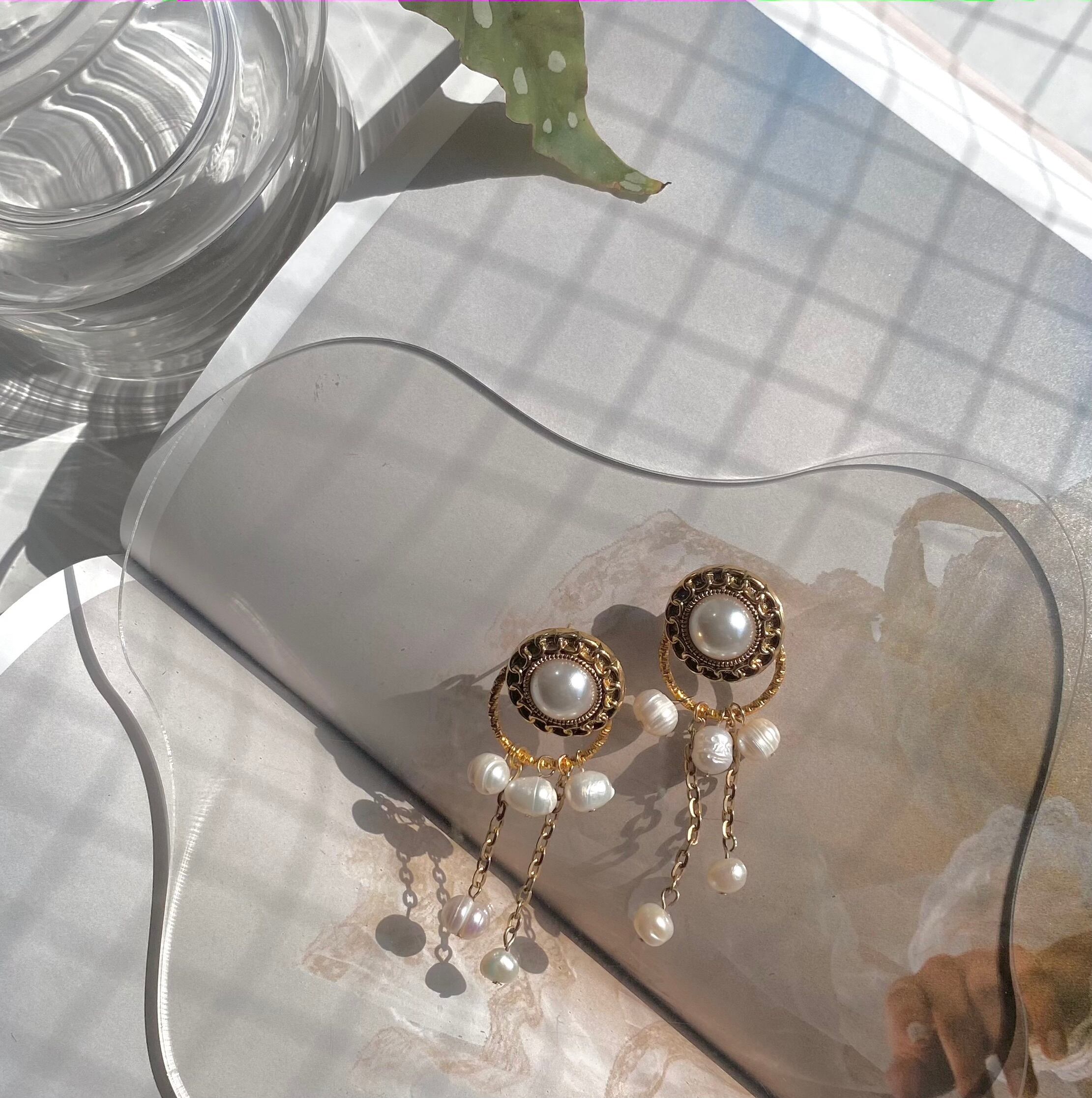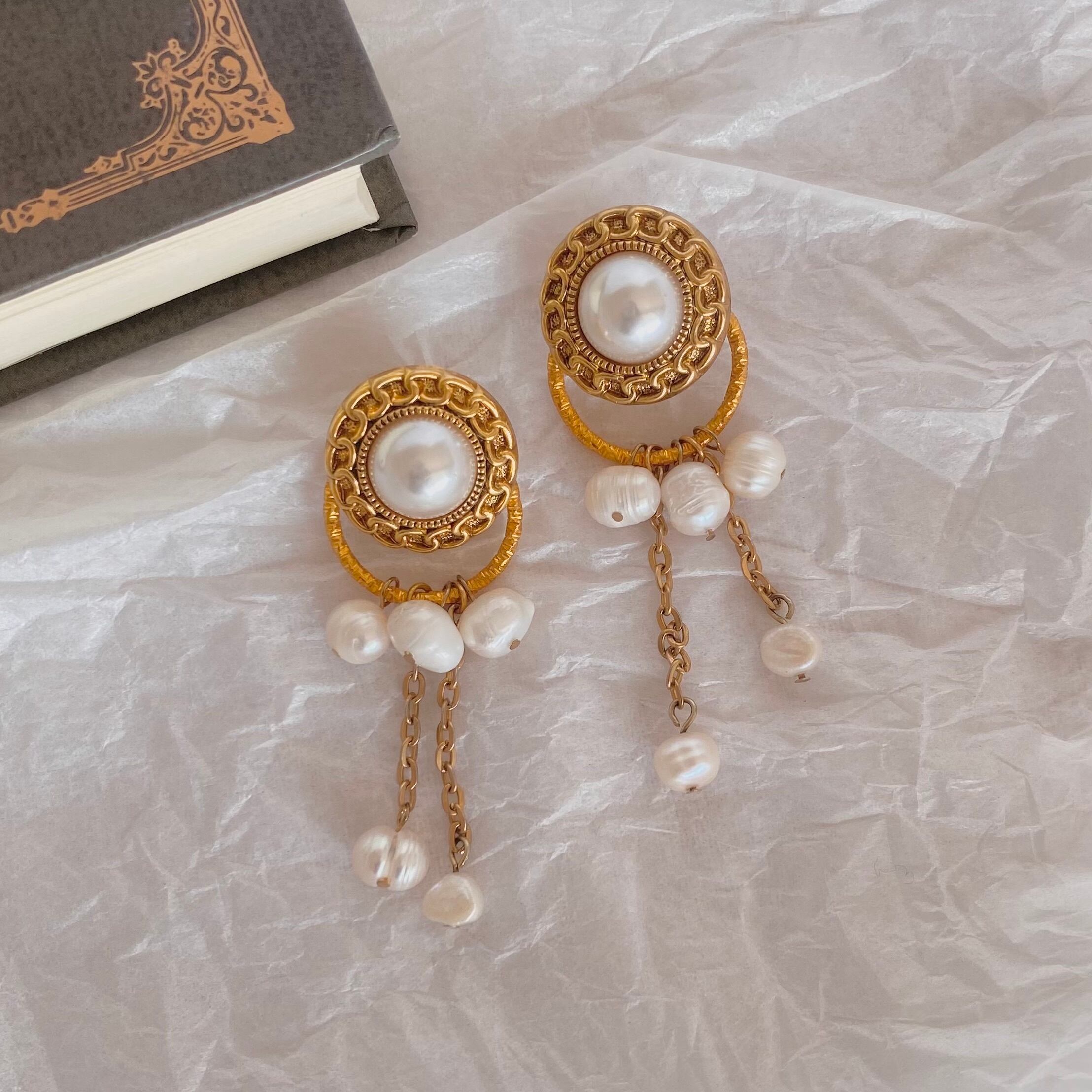 印象的なヴィンテージパールのピアスで、あなたの装いを華やかに演出しましょう。