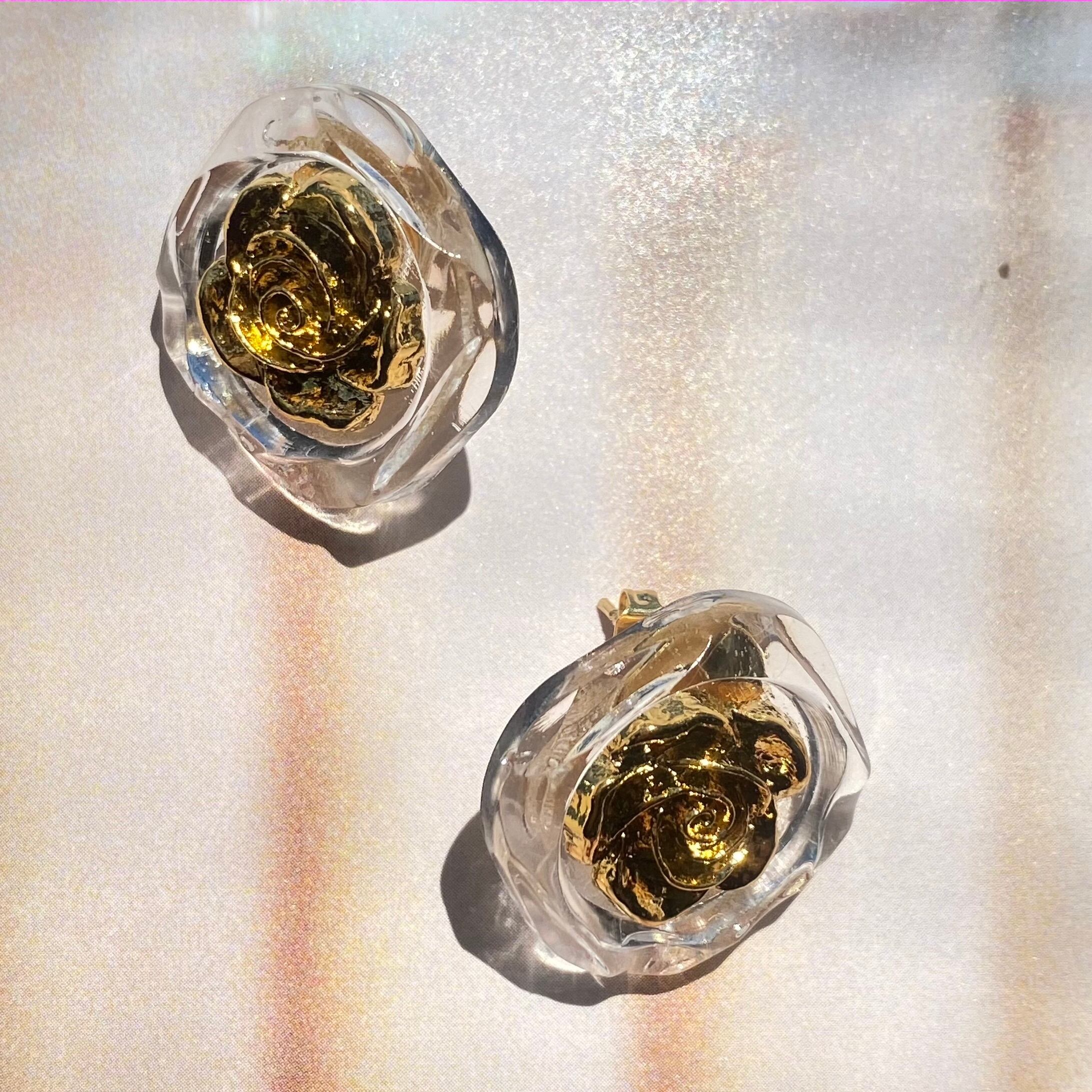 MARIAはヴィンテージクリアフラワーとコットンパールの2WAYピアスです。