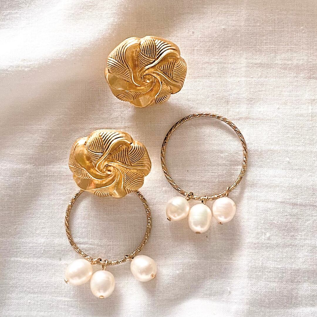 ヴィンテージ感溢れるフラワーモチーフと淡水パールが印象的な